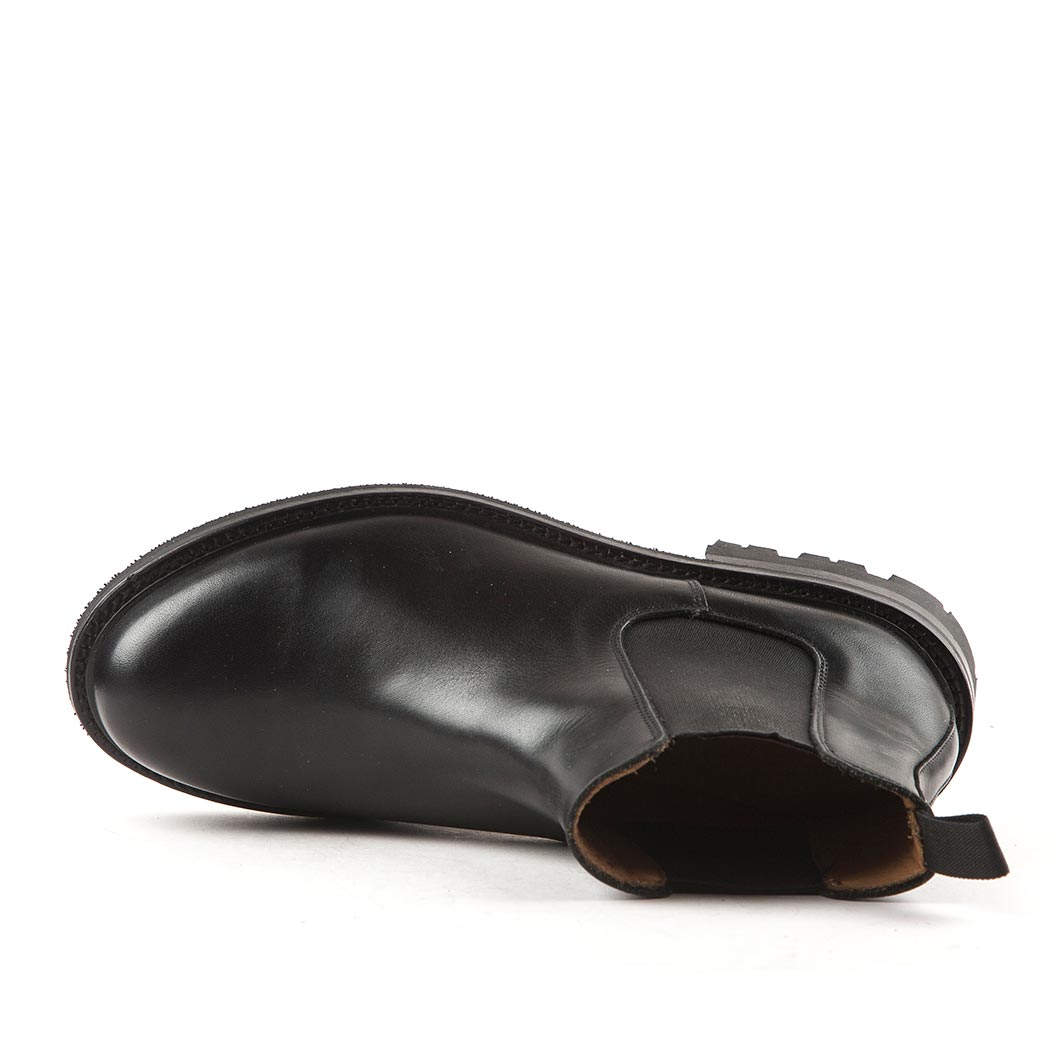 Chelsea boots with sturdy tractor sole in rubber. Upper in strong, brown, waxed pull-up leather which will age beautifully. Lined with calfskin,